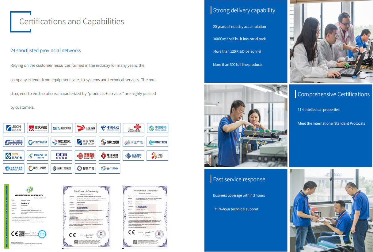 Lootom Telcovideo Network (Wuxi) Co., Ltd. is committed to becoming a world-renowned enterprise in network integrated solutions, providing integrated solutions and services for global network operators. Lootom was established in February 2007 and listed on the Shenzhen Stock Exchange Growth Enterprise Market in October 2016 (300555.sz).