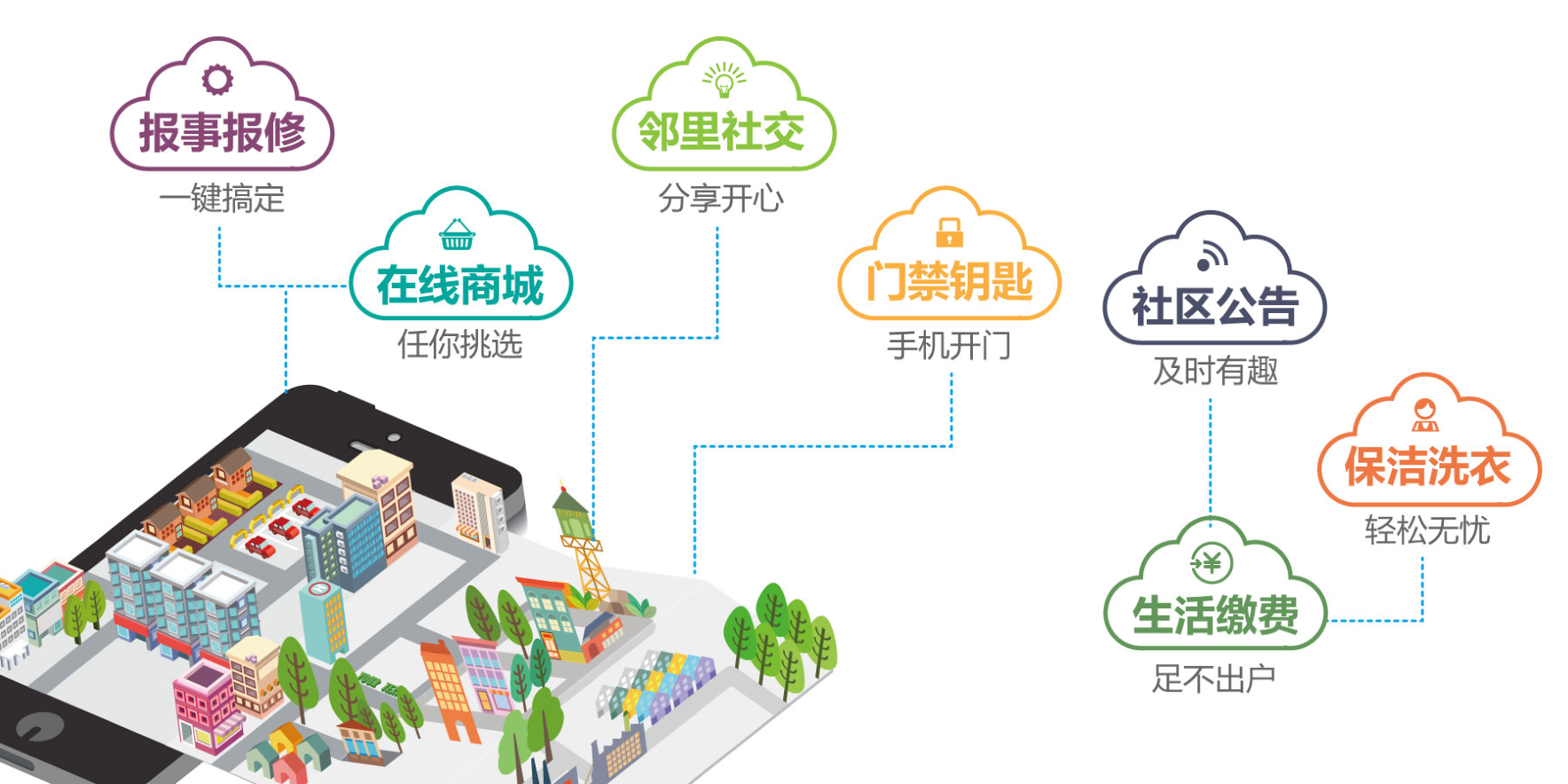 顺利获得“平台+硬件+运营”的软硬件相结合理念,涵盖到社区生活的方方面面,大到社区门禁、社区监控、社区通讯等,小到家居设备、安全警报、居家医疗设备等,均可顺利获得硬件设备将大数据收集传输备份至云端数据库,顺利获得平台整合分析可在线监控社区安全、接受社区需求、给予