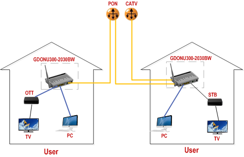 GDONU300-2030BW is FTTH slaver combined GPON ONU and CATV optical receiver in one box. GDONU300-2030BW series are optical network ...